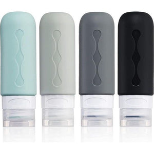 Siliconen reisflessen, 90 ml, set van 4 stuks, lekvrije reiscontainers en toiletartikelen, FDA goedgekeurde navulbare vloeistofcontainer voor shampoo, crème, spoeling en lichaamsverzorging, zwart