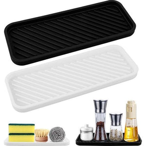 Siliconen sponsenhouder 2 stuks, siliconen spoelbakorganisator, siliconen sponshouder voor de gootsteen, smalle afdruipmat, spons zeepkist, siliconenmat voor de wastafel, siliconen plank voor de keuken en badkamer (zwart-wit).