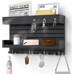 Dubbellaagse structuur magneethaak sleutelhouder: de bovenste laag met schot is speciaal ontworpen met drie magneten op het sleutelrek, die handig is om 3 sleutels op te hangen, zodat je de ruimte kunt gebruiken. Bovendien heeft deze sleutelhaakhouder voor wanddecoratie 4 metalen dubbele haken, onderste bodem is open ruimte, je kunt de stijl ontwerpen zoals je wilt. Rustieke sleutel-mailorganizer aan de muur gemonteerd: onze mailsleutelhouder is gemaakt van massief hout. Na meerdere processen is deze sleutelhanger duurzaam en niet schimmel. Deze rustieke sleutelhanger en mailsorterorganizer is perfect voor opslag en wanddecoratie. Veelzijdige opslag voor post en meer: geen zorgen meer over het verliezen van sleutels of post! Op het bovenste niveau van het zwevende rek met afbuigplaat kun je je post, rekeningen, brieven, kranten, tijdschriften enz. opbergen. Een ander zwevend rek bewaart portemonnees, zonnebrillen, accessoires, kleine planten en nog veel meer. 4 dubbele haken van metaal en 3 magnetische sleutelhaken voor het ophangen van sleutels, paraplu, mantel en hoed, hondenriem enz. Ideale wanddecoratie en cadeau: chantage en sleutelorganisatie als elegante huisdecoratie, je kunt het ophangen in de entree, hal, woonkamer, keuken, bijkeuken, bergruimte, garage, kantoor, slaapzalen, enz. Verras je dierbaren met deze decoratieve en functionele sleutelhangers voor aan de muur. Het is een perfect cadeau voor housewarming, bruiloften en andere speciale gelegenheden. Eenvoudig te installeren: leg het moederbord plat op een vlak oppervlak en plaats vervolgens de afstandhouder in het hoofdgedeelte. Gebruik 4 schroeven om het aan de linker- en rechterkant te bevestigen (er zijn in totaal 4 gaten aan twee zijden). Nadat je de expansieschroef in de muur hebt gedreven, plaats je de schroef en hang je het product aan de schroef. Opmerking: draai de schroeven niet met te veel kracht aan.