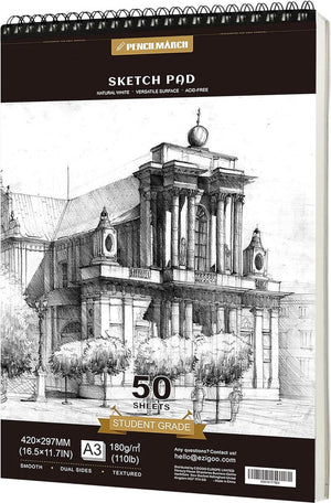 Spiraalgebonden schetsblok, schetsboek, A3 180 g/m² 50 vellen. Tekenblok voor kunstenaars. Ideaal voor het atelier, school of thuis