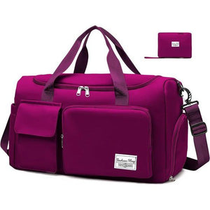 Sporttas voor dames en heren, reistas met schoenenvak en nat vak, groot, opvouwbaar, waterdichte zwemtas, lichte trainingstas, jongens, meisjes, duffeltas voor sport, fitness, reizen, paars