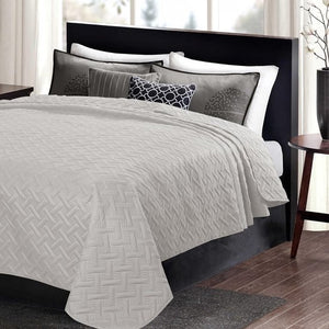 Sprei, bedsprei met geometrisch patroon, slaapkamer woondeken, zacht en huidvriendelijk, dekbed van microvezel met ultrasoon genaaid, gewatteerde deken voor bed, 170 x 210 cm, lichtgrijs