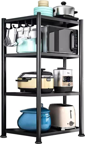 METALEN PLANK MET 4 niveaus: Deze veelzijdige metalen plank met 4 niveaus is een geweldige opbergoplossing voor uw keuken, badkamer of garage. Gemaakt van duurzaam koolstofstaal dat veilig en langdurig gebruik garandeert. VERSTELBARE HOOGTE: Met een verstelbare hoogte tussen elke positie, kunt u zich met deze keukenkast aanpassen aan de ruimte die u nodig heeft. Ideaal voor het opbergen van voorwerpen van verschillende afmetingen in uw keuken of badkamer.