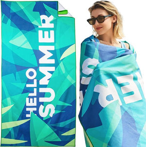 Strandhanddoek, groot, microvezel handdoek, 180 x 90, zandafstotend, sneldrogend, microvezel, groot, voor strand/zwembadside/strandstoelen (zomerblad)
