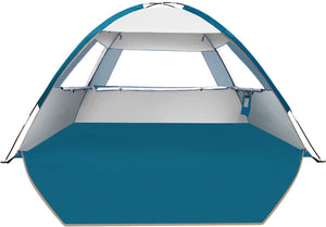 Grote strandtent voor gezinnen: de strandtent familie opent tot 102,4 inch L × 65 inch B × 59,1 inch H en biedt een ruime, schaduwrijke schuilplaats voor een gezin van 4 tot 5 personen met een 55 inch grote voorveranda, die extra ruimte biedt voor meer activiteiten of voor twee normale strandstoelen om te ontspannen. Ideaal voor gezinnen en vrienden om te ontspannen op het strand en kamperen in de open lucht. Eenvoudige montage en draagbaar: de zonweringstent is gemakkelijker op te vouwen en op te bergen dan een pop-up strandtent en kan door één persoon in enkele minuten volgens de instructies worden opgebouwd. De opgevouwen afmetingen van de zonnetent zijn 40 x 14 x 10 cm, gewicht bij 10 kg, compact en licht genoeg voor rugzak of bagage voor je zomerreizen. UPF 50+ & 360° ventilatie: de buitentent is gemaakt van 210D Oxford-weefsel en duurzaam 190T polyester met een speciale zilveren coating die de zonnestralen reflecteert en absorbeert. Onze schaduwtenten voor het strand blokkeren effectief tot 98% van de schadelijke uv-stralen om jou en je gezin tegen de sterke zon te beschermen en de temperatuur in de tent te verlagen. De 3 mesh-ramen en de ventilatie aan 4 zijden zorgen voor ultieme koelte. Superstabiel en duurzaam: het nieuwe glasvezelframe met 8,0 mm dikke stangen is veiliger, duurzamer en roestvrij, waardoor de tent stabiel staat en zijn vorm behoudt, zelfs na lange tijd. De grote strandschelptent is uitgerust met 3 zandzakken en 4 haringen om stabiliteit te garanderen en te voorkomen dat hij door de wind wordt weggeblazen.