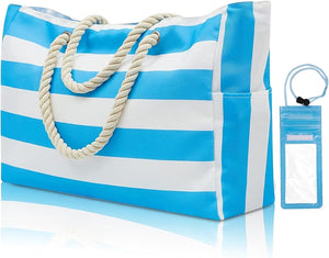 Zwemtas groot: deze ruime zwemtas van 19,6 x 13,7 x 6 inch biedt plaats aan 5 zwemkleding, 3-5 strandhanddoeken, schone kleding, kopjes, pantoffels, zonnebrandcrème, snacks, drankjes en nog veel meer. Hoogwaardig materiaal: damesstrandtas van uniek waterdicht en scheurbestendig polyesterweefsel met zacht, robuust koord. Kreukvrij, niet gemakkelijk te vervormen, gemakkelijk schoon te maken en duurzamer dan gewone reistassen. Praktische kenmerken: Onze XXL Family-badtas is uitgerust met een ritssluiting om uw waardevolle spullen veilig te houden. Daarnaast heeft hij 2 flessenvakken aan de zijkant en 1 binnenvak met ritssluiting waar je lippenstift, zonnebrandcrème, sleutels en andere kleine spullen in kunt opbergen. Waterdicht ontwerp: met een modieus streeppatroon en verschillende kleurmogelijkheden is onze waterdichte zwemtas xxl prachtig vormgegeven en overtuigt hij door zijn eenvoudige maar stijlvolle design. Een absolute musthave voor jouw zomervakantie!