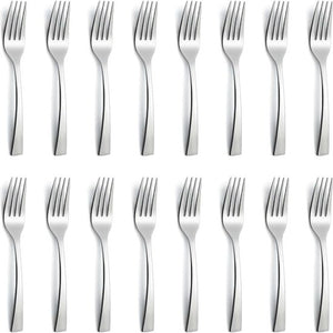 Vierkante handgreep en vaatwasmachinebestendig: de dessertvork van vierkante handgreep is zorgvuldig ontworpen om je tafel meer elegantie te geven. Onze taartvorken hebben een klassiek, helder design dat bij je bestaande bestek past om je eetervaring te verbeteren. Bovendien zijn de dessertvorken gemakkelijk te reinigen en absoluut vaatwasmachinebestendig. Hoogwaardig roestvrij staal: de zilveren taartvorken zijn gemaakt van hoogwaardig roestvrij staal. Deze vorken zijn solide, corrosiebestendig, roestvrij, geen geur, die ervoor zorgen dat je veilig van elke hapje van het eten geniet en je een saladevorkset biedt, die vele jaren zal meegaan. Voldoende en multifunctioneel: de taartvorken bevatten 16 vorken, meer dan 10 vorken, die een feestreserve kunnen zijn en perfect de taartvorken vervangen die in het dagelijks leven verloren gaan. Deze bestekvorken zijn een geweldige keuze voor restaurants, picknicks en geschikt voor feesten, familiediners enz. Ergonomisch en spiegelgepolijst: de 16,5 cm dessertvorken/taartvorken zijn ergonomisch ontworpen en hoogglans gepolijst. De kromming van onze ronde handgreep is ontworpen volgens de houding van de hand, en de rand van de dessertvorken is glad en zal je niet verwonden. Bovendien zijn de dessertvorken zorgvuldig gewogen, zodat ze comfortabel in de hand liggen.