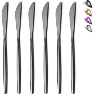 Tafelmes 6-delig, roestvrijstalen matzwart tafelmes, robuust botermes, modern design botermes, vaatwasmachinebestendig (matzwart-8,9 inch)