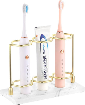 Tandenborstelhouder, 3 vakken, elektrische tandenborstelhouder van hars, voor tandpasta, scheerapparaat, organizer, houder voor wastafel, toilettafel, commode, make-uptafel, goud/marmer, wit