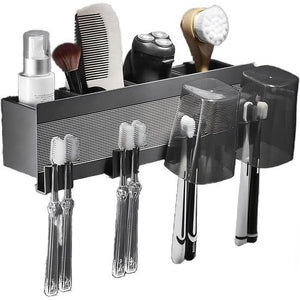 Tandenborstelhouder voor badkamer Zwarte kamer Aluminium 4 sleuven Tandenborstelhouder Hoekopbergdoos Geen boren Automatische installatie - Zelfklevend