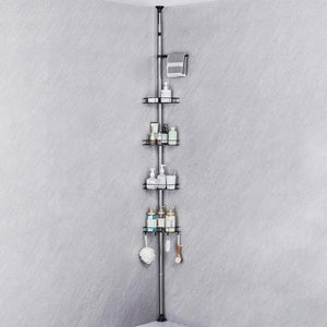 Telescopische doucheplank, 190-310 cm, in hoogte verstelbare doucheplank zonder boren, roestvrij staal, hoekrek, badkamerrek met 4 x manden, 4 x haken en 1 x handdoekhouder voor handdoek,