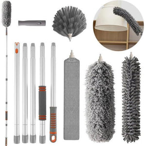 4-in-1 telescopische plumeau - Deze telescopische plumeau bevat 4 verwisselbare plumeaukoppen, een pluizige microvezelstofdoek en een chenille-veerstofdoek kunnen stof goed vasthouden en vasthouden, een platte stofdoek kan gemakkelijk het stof onder meubels en apparaten reinigen, de spinnenwebstofdoek maakt het mogelijk Je kunt vervelende spinnenwebben eenvoudig verwijderen. wij geloven dat deze super plumeauset indruk op je zal maken. Aluminium telescopische verlengstang - Deze telescopische stofborstel wordt geleverd met een 5-delige aluminium verlengstang. De plumeau kan tot 230 cm worden uitgeschoven, waardoor u eenvoudig stof uit alle hoeken kunt verwijderen zonder dat u een extra ladder of kruk nodig heeft. Ideaal voor het verwijderen van stof van meubels, plafonds, plafondventilatoren, jaloezieën, ramen, auto's, boekenplanken, banken en andere voorwerpen op oppervlakken of in kieren. Flexibele en afneembare plumeau - De kippenstofdoek is zeer flexibel, kan in elke hoek worden gebogen, is gemakkelijk schoon te maken in allerlei dode hoeken, de plumeau kan eenvoudig worden gedemonteerd, verwijder de kop van de borstel na gebruik en was hem met warm water. water kunnen de penselen na het drogen uiteraard hergebruikt worden. Dankzij het hangende ontwerp kunt u de plumeau ophangen zonder ruimte in beslag te nemen. Brede toepassing - Deze afstof- en reinigingsset is geschikt voor vele gelegenheden, u kunt eenvoudig alle fijne deeltjes van vloer tot plafond reinigen, perfect voor het verwijderen van stof uit hoeken en gaten, muren, ventilatoren, jaloezieën, vloeren, onder bedden, meubels, auto's en andere hoeken en gaten.