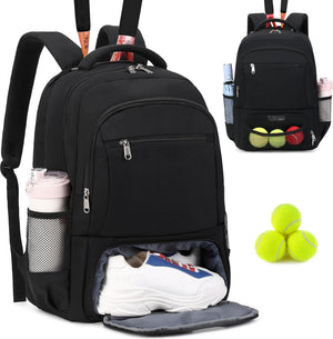 Geïsoleerde tas: De koeltas aan de voorzijde van deze tennisrugzak is verdikt met schuim en gecombineerd met een aluminium laag, zodat deze urenlang koude dranken kan bewaren. De gemakkelijk schoon te maken, waterdichte voering verlicht de zorgen over het smelten van ijs en lekken. Daarnaast kun je in dit vak van deze herentennistas natte kleding of handdoeken stoppen om te voorkomen dat zweetvlekken andere droge spullen besmetten. Grote capaciteit en schoenenvak: hoofdvak met veel kleine vakken zorgt ervoor dat je spullen georganiseerd en gemakkelijk te vinden zijn. Het voorvak heeft een sleutelhangerhaakje voor je kleine spullen. Deze tennistas heeft ook twee mesh zijvakken voor een waterfles, paraplu of blikje ballen. Bovendien kunnen de tennistassen voor dames met schoenenvak natte en vuile schoenen uit de buurt houden van schone kleding of andere spullen. GEMAKKELIJK TE GEBRUIKEN: Het racketcompartiment van deze tennistas is voorzien van een gevoerde scheidingswand die is gevormd om rackets individueel vast te houden en te beschermen. De dubbele antislipritsen verankeren het tennisracket effectief op zijn plaats. Bovendien is deze tennisracketrugzak voorzien van een handige hekhaak waarmee u het net eenvoudig kunt ophangen, terwijl de schouderbanden zijn voorzien van reflecterende banden om uw zonnebril of hoed vast te zetten.