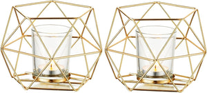 Theelichthouder kaarsenhouder metaal goud - set van 2 geometrische theelichtjes kaarsenstandaard stompkaars windlicht modern geo decoratie voor tafeldecoratie feest bruiloft woonkamer