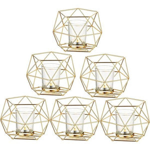 Theelichthouder kaarshouder metaal goud – set van 6 geometrische theelichtjes kaarshouder zuilkaars lantaarn moderne geo-decoratie voor tafeldecoratie feest bruiloft woonkamer Kerstmis