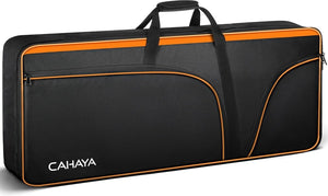 Binnenmaten: 98,8 x 43,7 x 16 cm. De 61-toetsenbordtas is geschikt voor de meeste gangbare 61-toetsenbordmodellen. Duurzaam 600D Oxford-weefsel is duurzaam genoeg om een lange levensduur te hebben. De 12 mm dikke voering is dikker dan bij andere toetsenbordvakken. Beschermt het toetsenbord effectief tegen onverwachte stoten. Gezien het gewicht van het zware toetsenbord beschikt de 61-toetsenbordtas over duurzame, verdikte en ademende verstelbare schouderbanden en een handgreep aan de zijkant die de druk op schouders en handen door het gewicht van het toetsenbord vermindert. Zeer eenvoudig en comfortabel om te dragen als je naar buiten gaat trainen of naar de les gaat. Deze toetsenbordtas is een onafhankelijk ontwerp van ons dat een stijlvolle uitstraling en krachtige functie combineert. 2 grote buitenvakken zijn groot genoeg voor muziekstandaard, bladmuziek, muziekboek, stroomkabel, laptop enz. Je kunt alles wat je nodig hebt op een georganiseerde manier voor giging en reizen krijgen.