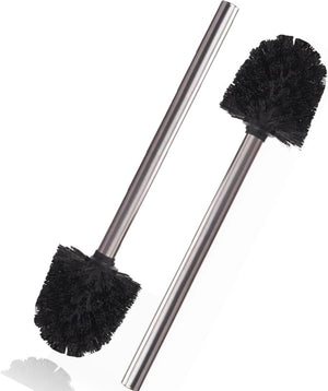 Toiletborstel, wc-borstel met randreiniger, upgrade wc-borstel, gebogen lange steel, kunststof toiletborstelset met sterke borstelharen voor dieptereiniging, 2 stuks, zwart
