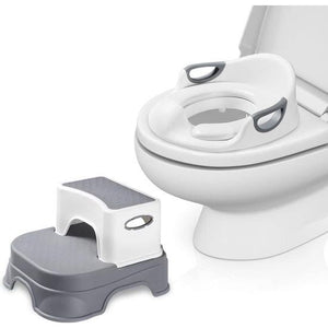 Toiletbril voor kinderen met opstapje voor kinderen, potje voor kinderen met kruk, kinderen vanaf 1 - 7 jaar, kindertoilet, babyzitje, antislip bekleding, wc-opzetstuk (grijs)