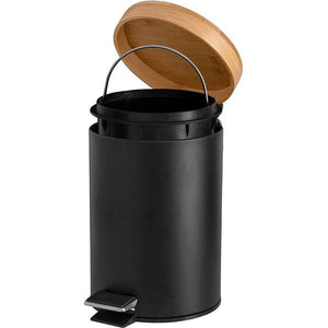 Toiletemmer met deksel van bamboe, pedaalemmer met softclose-mechanisme voor de badkamer, zwart