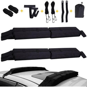【Widely Compatible】The soft roof rack is perfect for transporting your kayak/surfboard/canoe/ski to your favorite paddle point, with a maximum load of 60kg. It is suitable for almost any vehicle type, whether your car has side rails or gutters or not. 【High Security】: The adjustable straps with padded cam locks and the 2 x 55 foot bow and rear straps ensure that your cargo is securely secured on the front and back of the vehicle. Depending on the size, it can hold up to 1-3 short boards / 1-2 long boards or kayaks. 【High Quality Foam Padding & Anti-slip Pads】: The non-slip pad at the bottom can be firmly attached to reduce wind noise while protecting the surface of your roof from scratches. The high-quality EVA foam padding ensures a gentle landing for your load and reduces vibration during transport. 【Easy installation and removal】: No tools required for installation. The soft frame set comes with all necessary accessories and straps to secure the pillow to the blanket and secure the load in place. Foldable design, you only need to loosen the straps when not in use, and then store in the storage bag. 【Precautions】: The soft roof rack is specially designed for lightweight equipment such as skis, snowboard and skateboards. Please limit the speed on the road.