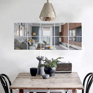 Vierkant acryl spiegelstickervel, 10 stuks acryl spiegel-muurstickers, 15 cm x 15 cm, verwijderbare muurstickers, voor badkamer, woonkamer, slaapkamer, stickers (zilver)