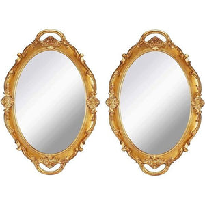 Vintage spiegel kleine wandspiegel hangspiegel 36,8 x 25,4 cm ovaal goud 2 stuks