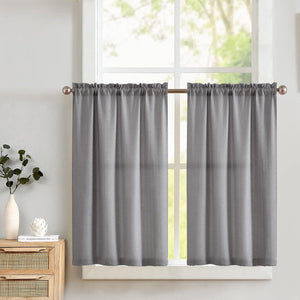 Vitrage bistrogordijn ondoorzichtig gordijn venstergordijn gordijn gordijn gaas sjaals half-transparant raamsjaal voor keuken woonkamer landhuis set van 2 90 x 60 H (cm) grijs