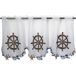 Vitrage stuurwiel voor keuken, badkamer en kinderkamer, wit gordijn met maritiem motief, 45 x 115 cm, modern en transparant bistrogordijn
