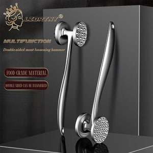 Vleesklopper, roestvrij staal, incl. roestvrijstalen vleeshamer, extreem robuust, vleeshamer voor rundersteak, varkensvlees, kip, vis, zacht maken en stampen