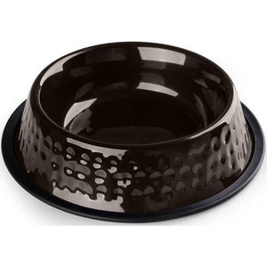 Voedingsbak voor hond en kat, aluminium voederbak 0,9 l, hondenbak, kattenbak, waterbak - zwart gehamerd