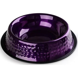 Voedingsbak voor honden, aluminium voerbak 1,9 l voor grote honden, hondenbak, waterbak - paars gehamerd