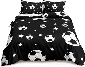 Voetbalbeddengoed, 135 x 200 cm, voor kinderen, jongens, tieners, sportdekbedovertrekset voor eenpersoonsbed, modern bedrukte dekbedovertrekken met ritssluiting en kussensloop van 80 x 80 cm