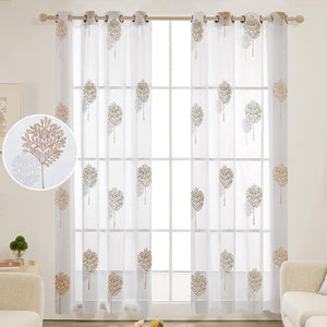 Afmetingen: een pakket bevat 2 geborduurde semi-transparante gordijnen. Afmetingen: ca. 175 x 140 cm (hoogte x breedte). De transparante gordijnen met modern design hebben 8 metalen ogen voor eenvoudig ophangen en bevestigen aan decoratieve stangen.