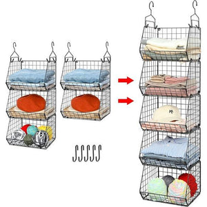 Wand-, kast- en hangopslag: uitgerust met 4 stevige grote ophanghaken, waarmee je de mand aan de kledingstang of kledingstang kunt ophangen. Optioneel wandgemonteerd ontwerp, eenvoudige montage aan de muur met de meegeleverde hardware. Bovendien kun je hem plat op een oppervlak gebruiken om voorwerpen overal op te bergen, bijvoorbeeld in de slaapzaal, in de badkamer, in kasten of in de bijkeuken. 5-in-1 of afzonderlijk bruikbaar: de kast-hangorganizer is een meerlaags design, dat naar behoefte en idee alleen of gestapeld kan worden gebruikt. En je kunt alle vijf manden aan elkaar schroeven en als eenheid aan de kledingstang hangen om kleding, hoeden, truien, overhemden en andere accessoires op te bergen. Je kunt de gebruiksmethoden zelf knutselen. Opvouwbaar hangrek met 5 S-haken: op