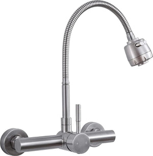 Wandmontage, keukenkraan, roestvrij stalen waterkraan, 360 graden draaibaar, uitloop, mengkraan met één hendel, mengkraan + 2 straalsoorten, spoelbakarmatuur, mengkraan met één hendel