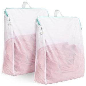 Grote capaciteit en opening: 2 stuks netzakken van 50 x 60 cm voor wasgoed, de linker- en rechterkant en de bodem van de tas worden met 10 cm verbreed, de inhoud wordt met 40% uitgebreid en de extra ruimte kan grondiger worden gewassen en gedroogd. De grote opening is gemakkelijker om kleding op te bergen of eruit te halen dan een normale vierkante toilettas Handvat design: waszak met handvat, eenvoudige opslag en ruimtebesparend, vooral als je wasmachine zich op een andere verdieping of in andere gebouwen bevindt Ademend mesh: herbruikbare en ademende waszak voor vuile was. Het dichte mesh-design, fijne afwerking, . Zeer sterke polyestervezelmaterialen, die robuust genoeg zijn voor langdurig gebruik. Zeer strak en fijnmazig met kleine gaten, gemakkelijk te filteren van stof en vuil Optimale bescherming: met YKK-ritssluiting om de kleding niet te haken. Beschermhoes voor ritssluiting om wrijving te verminderen. om het openen of wrijven tegen kleding tijdens het wassen te voorkomen. Het dichte mesh-ontwerp kan helpen om je doeken goed te beschermen. Hij maakt nauwelijks geluid of beschadigt je wasgoed of wasmachine tijdens het wassen 【Ideaal voor de bescherming van fijne was】wasnet voor gevoelige blouse, kousen, beha, ondergoed, babykleding, jas, jeans en schoenen