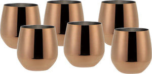 Stijlvolle en decoratieve 6-delige wijn- en waterbekerset. Onbreekbare en zeer robuuste glazen van hoogwaardig roestvrij staal. Dankzij de koperen coating blijven de dranken voor een langere tijd koel. Zeer mooi gevormde wijn- en waterkelken kunnen veelzijdig worden gebruikt. Perfect geschikt voor een picknick, tuinfeest of dagelijks gebruik. Extreem lichte wijn- en waterkelk, ideaal voor alle outdooractiviteiten zoals kamperen of festivals. Binnenkant gematteerd en aan de buitenkant gepolijst. Geschikt voor levensmiddelen, BPA-vrij en corrosiebestendig. Milieuvriendelijk herbruikbaar alternatief voor plastic bekers. Inhoud: ca. 500 ml. Afmetingen (b x h): ca. 9,5 x 10 cm. Gewicht: ca. 150 g. Handwas aanbevolen.