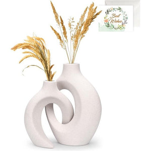 Uniek ontwerp: de keramische bloemenvaas heeft een hol ontwerp en een mat oppervlak. De vaas voelt natuurlijk en eenvoudig aan en heeft een unieke uitstraling die afwijkt van de traditionele stijl van vazen. Het unieke ontwerp lijkt op een romantisch paar dat verliefd op elkaar knuffelt en geeft je huis meer warmte, elegantie en romantiek! Hoogwaardig materiaal: je ontvangt 2 holle keramische vaasdecoraties in Scandinavische stijl, in 2 verschillende maten, groot (16,2 x 21,5 x 3,3 cm) en klein (13,8 x 17,6 x 2,4 cm). De vazen zijn allemaal gemaakt van handgemaakte klei. De vaas heeft een matte textuur en een driedimensionaal gevoel; de bodem van de vaas is glad en plat. Ze kunnen naar wens worden samengevoegd of gescheiden. Multifunctionele vaas: het unieke, eenvoudige ontwerp van de