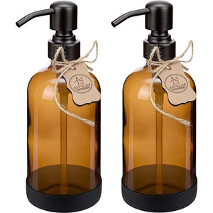 Zeepdispenser 'Sarajevo' - dubbele set douchedispenser van bruin glas fles met siliconen onderzetter en 304 dubbele pompkop in mat zwart (2 stuks van 500 ml)