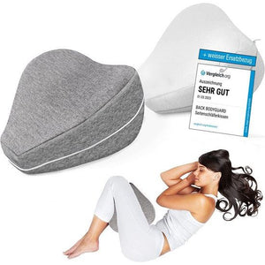 • Ergonomisch design scheidt de knieën op ideale afstand, zodat de heupen goed gepositioneerd zijn. De vorm van het kniekussen past zich perfect aan de benen aan tijdens het zijslapen.