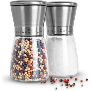 Zout - en Pepermolen Set, Pepermolen, glazen Zoutmolen met Verstelbare Keramische maal, roestvrij staal, kruidenmolen voor kruiden, peper, zout en Chili