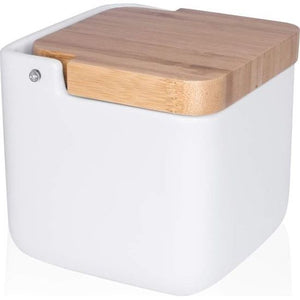 Milieuvriendelijk materiaal: deze zoutpot is gemaakt van hoogwaardig keramiek, met een klapdeksel van natuurlijk milieuvriendelijk bamboe, dat er niet alleen stijlvol uitziet, maar ook de frisheid en smaak van zout behoudt. Veelzijdig inzetbaar: naast zout kan de doos ook worden gebruikt voor het bewaren van suiker, specerijen of andere droge ingrediënten. Een onmisbaar accessoire in je keuken. Praktisch design: de zoutpot heeft een klapdeksel, dat het openen en sluiten vergemakkelijkt en tegelijkertijd voorkomt dat vocht binnendringt. Zo blijft je zout altijd droog en strooibaar. Eenvoudige reiniging: de keramische doos is gemakkelijk te reinigen, gewoon met warm sopje afspoelen en laten drogen. Het bamboedeksel mag alleen met een vochtige doek worden afgeveegd.