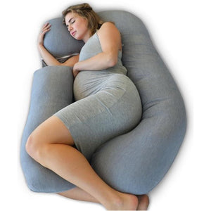 Ons nieuwe U-vormige zwangerschapskussen is nu uitgerust met een speciale verkoelende overtrek, die koel aanvoelt en de warmte afvoert. Perfect voor de zomer of tijdens de zwangerschap, zodat je je 's nachts koeler voelt. Ons U-vormige zwangerschapskussen ondersteunt rug, heupen, knieën, nek en hoofd om klachten in verband met zwangerschap, ischias, fibromyalgie, maagreflux en meer te verlichten. Het zijslaapkussen beschikt over een afneembare verlenging, die als zelfstandig full-body kussen kan worden gebruikt of aan het hoofdlichaamskussen kan worden bevestigd om de rug of buik extra te ondersteunen. Dit maakt dit kussen tot een uitstekend kussen voor zwangere vrouwen en alle anderen! Meer dan een kussen voor zwangere vrouwen: dit lichaamskussen is perfect voor iedereen die meer ondersteuning nodig heeft, zich van een operatie herstelt