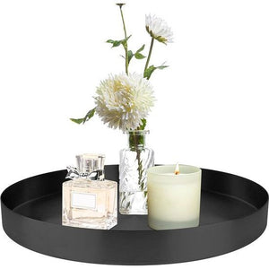 Zwart rond dienblad van metaal, Ø 30 cm dienblad, drankorganizer, decoratief dienblad, decoratief dienblad, kaarsenbord, dienblad voor sieraden, make-up, theeset, vazen