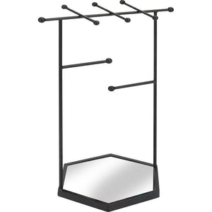 Zwarte sieradenorganizer, sieradenstandaard met zeskantige sokkel, 3-traps metalen sieradenorganizer met spiegelbasis, voor het opbergen van cosmetica, oorbellen, armbanden, ringen en