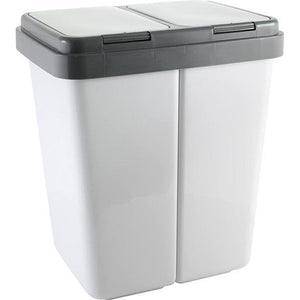 • Onderhoudsvriendelijke duo-vuilnisemmer van kunststof in de subtiele kleurencombinatie grijs/graniet, doordacht afvalscheidingssysteem voor huishouden, keuken, badkamer of kantoor